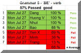 pass, fail and have to redo.&; July 1st, grammar test 10, tenses. 27%